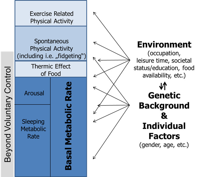 – von Loeffelholz C, Birkenfeld AL. Non-Exercise Activity Thermogenesis in Human Energy Homeostasis. 2022 Nov 25. In: Feingold KR, Adler RA, Ahmed SF, Anawalt B, Blackman MR, Chrousos G, Corpas E, de Herder WW, Dhatariya K, Dungan K, Hamilton E, Hofland J, Jan de Beur S, Kalra S, Kaltsas G, Kapoor N, Kim M, Koch C, Kopp P, Korbonits M, Kovacs CS, Kuohung W, Laferrère B, Levy M, McGee EA, McLachlan R, Muzumdar R, Purnell J, Rey R, Sahay R, Shah AS, Sperling MA, Stratakis CA, Trence DL, Wilson DP, editors. Endotext [Internet]. South Dartmouth (MA): MDText.com, Inc.; 2000–. PMID: 25905303.