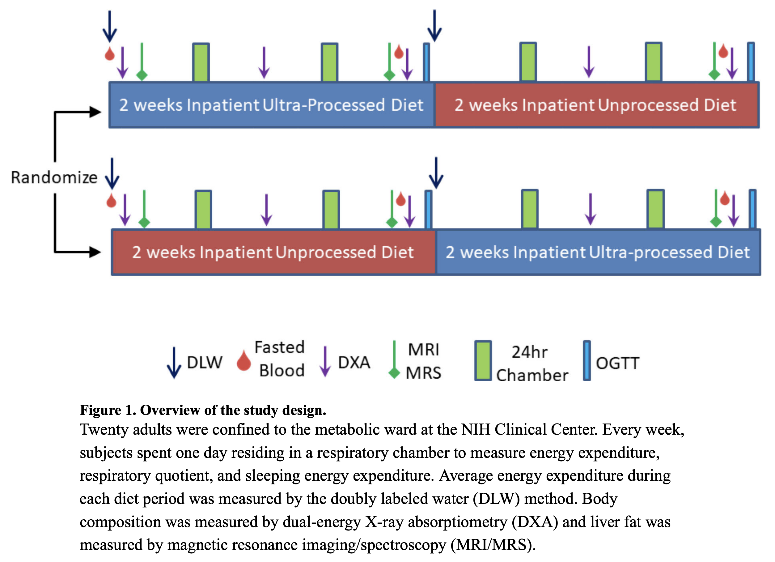 • ทั้งสองกลุ่ม จะกินอาหาร UPD หรือ อาหารไม่ผ่านกระบวนการเป็นเวลา 2 สัปดาห์ ก่อนจะ สลับไปกินอาหารอีกแบบ อีกเป็นเวลา 2 สัปดาห์